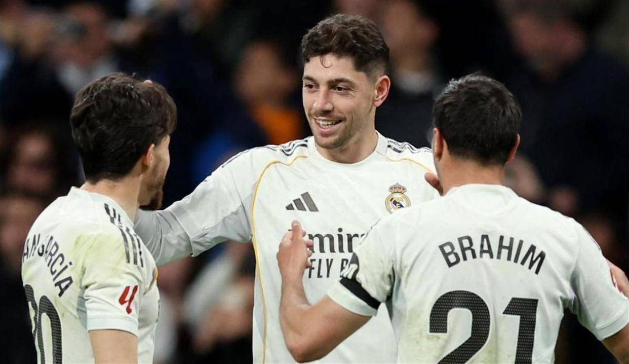 最晚开球的皇家马德里在伯纳乌没有让球迷等待太久。 面对为保级而战的埃尔切,皇马虽然控球率不占优,但进攻效率极高。 第39分钟,巴尔韦德主罚的任意球造成门将脱手,皮球落到禁区内的德国中卫吕迪格脚下,他不等皮球落地,直接一脚凌空抽射破门,为皇马打破僵局。 仅仅5分钟后,皇马卷土重来,左后卫弗兰-加西亚横传中路,巴尔韦德在禁区弧顶处停球晃开角度,随即用一脚精彩的兜射将球送入球门右上角,皇马2-0领先。 这是巴尔韦德连续第三场比赛进球,状态热得发烫。